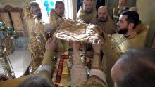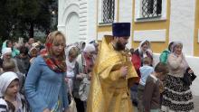 После Божественной литургии состоялся праздничный Крестный ход с частицей мощей Иоанна Крестителя, которая является основной святыней храма, и к которой с благоговением смогли приложиться все молящиеся после Крестного хода.