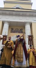 После Литургии состоялся праздничный Крестный ход, после которого настоятель храма обратился с проповедью ко всем присутствующим, в которой поблагодарил прихожан за любовь ко храму Господню и поздравил всех с праздником, пожелав здоровья, помощи Божьей на многая и благая лета.