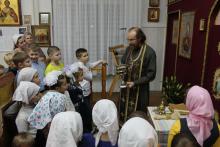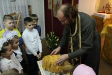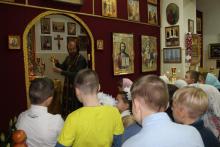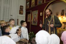 Силами родителей и детей была подготовлена литературная композиция, посвящённая истории праздника Введения. А затем свои первые шаги к воцерковлению сделали сами дети с помощью настоятеля храма – протоиерея Романа Изосимова, который провёл для ребят небольшую экскурсию внутри храма, познакомив с его устройством.