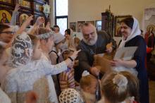 Учащиеся воскресной и общеобразовательной школ подготовили праздничный утренник, на котором присутствовали директор школы, прихожане и родители. После праздника все дети получили подарки. С поздравительным словом к прихожанам и гостям праздника обратился настоятель храма священник Игорь Скороходов. Завершился праздник совместным чаепитием.
