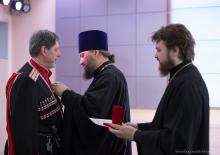 В завершение мероприятия юбилейными медалями Русской Православной Церкви «В память 100-летия восстановления Патриаршества в Русской Православной Церкви» были награждены некоторые атаманы.