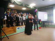 В детском саду и школе для гостей дети подготовили тематические представления, продемонстрировав свои навыки в знаниях правил дорожного движения, в конце мероприятий инспектор по пропаганде ОГИБДД Е.Н. Гречихина напомнила малышам о правилах дорожного движения, а отец Феодосий пояснил детям о том, как нужно вести себя на дороге и в транспорте, после чего всем ребятам гости подарили светоотражающие сувениры.
