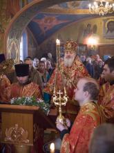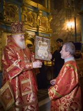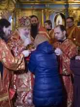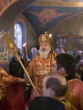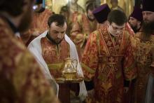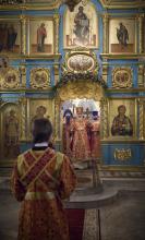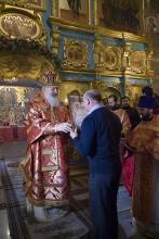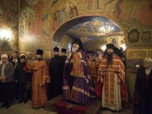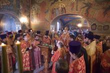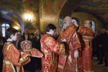 Служба сопровождалась пением хора выпускников Московской духовной академии под руководством регента иеромонаха Нестора (Волкова).
