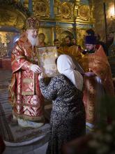 Обращаясь к прихожанам и гостям храма Грузинской иконы Божией Матери с архипастырским словом, Владыка Тихон передал благословение Управляющего Московской епархией митрополита Ювеналия, поздравил присутствующих с праздником, напомнив о неоценимом значении подвига новомучеников и исповедников: