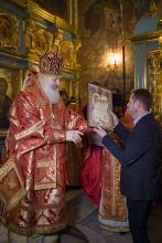 В память о торжественном событии от лица прихожан Лопасненской земли Владыке Тихону была преподнесена в дар на молитвенную память икона Христа Спасителя.