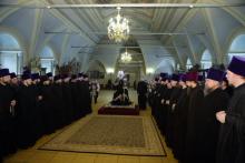 Перед началом награждения митрополит Ювеналий совершил заупокойную молитву о погибших в результате пожара в торговом центре города Кемерово.