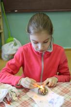 Учебное занятие по основам старинного народного промысла – росписи яиц горячим воском, провели прихожане храма Сорока Севастийских мучеников города Чехова-2, при содействии руководителя городской изостудии Екатерины Мироновой.