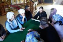 25 марта в Воскресной школе Успенского храма с Новоселки была проведена встреча с учащимися Воскресной школы и их родителями. Им была предложена лекция о первом издании печатной книги в России, а так же было рассказано о том, как она была оформлена и о самой технике книгопечатания.