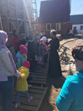 9 ноября, в понедельник Светлой седмицы, на территории Михайло-Архангельского храма деревни Хлевино состоялся пасхальный праздник - «Пасхальный перезвон». В мероприятии приняли участие учащиеся третьей школы со своими родителями и учащиеся воскресной школы Михайло-Архангельского храма. Вначале настоятель храма священник Михаил Тарасов рассказал присутствующим о празднике Пасхи и о традиции колокольного звона. Затем каждый участник мог позвонить в колокола на звоннице.