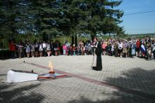 После торжественного митинга в храме был отслужен благодарственный молебен ко Господу за дарование Победы и лития о погибших.