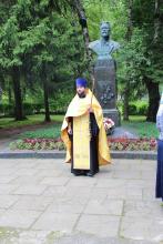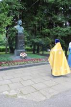 Мероприятие началось с панихиды у памятника А.П. Чехову, которую возглавил благочинный Чеховского церковного округа священник Константин Александров при пении хора Зачатьевского храма города Чехова.