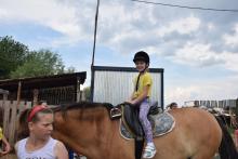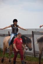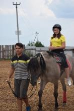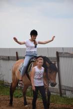 После чего, каждый смог почувствовать себя наездником и даже научились некоторым элементам вольтижировки под управлением Татьяны Владимировны. Особую радость доставила ребятам возможность покормить животных привезенным угощением.