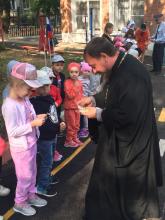 4 сентября во всех образовательных учреждениях городского округа Чехов проходит единый день профилактики ДДТТ и обучения ПДД. Сотрудники ГИБДД, методисты УМЦ, ответственный по взаимодействию с Вооруженными силами и правоохранительными органами Чеховского благочиния, настоятель Никольского храма д. Кулаково иеромонах Феодосий (Поддубоцкий) провели беседы по БДД в детском саду № 4 и лицее № 4 города Чехов.