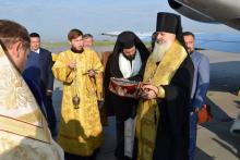 Утром 7 сентября ковчег с десницей свт. Спиридона Тримифунтского прибыл в Московскую область. Святыню, которую сопровождал архимандрит Иустин, в аэропорту "Остафьево" встречали епископ Видновский Тихон, глава г.о. Подольск Н.И. Пестов, представители Благотворительного фонда имени равноапостольного князя Владимира и духовенство Московской епархии. Собравшиеся пропели тропарь и кондак святителю Спиридону и приложились к мощам, после чего ковчег был доставлен в Кирилло-Мефодиевский храм города Подольска.