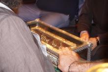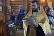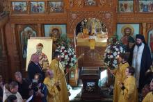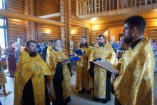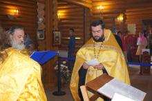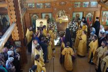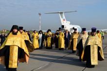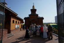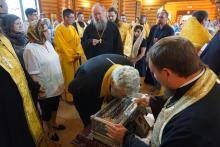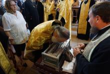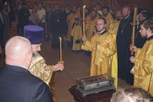 В 9.00 епископ Видновский Тихон в сослужении духовенства Московской епархии совершил перед ковчегом молебное пение с акафистом.