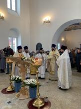После богослужения было совершено славление перед иконой Божией Матери и ковчегом с частицей мощей святителя.