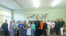 8 сентября среднюю школу №3 города Чехова посетил заместитель благочинного Чеховского церковного округа, настоятель храма святителя Луки Симферопольского города Чехова иерей Дионисий Пугачёв. Он поздравил классного руководителя 2 «А» класса Н.В.Гущину с днём Ангела и рассказал ребятам о праздновании дня небесного покровителя, о значении молитвы и обращения к Богу, поговорил с детьми о вреде сквернословия и важности послушания старшим наставникам.
