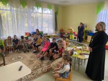 10 сентября в дошкольном отделении лицея №4 деревни Гришенки м.о. Чехов, в рамках реализации проекта по соработничеству Подольской епархии с муниципальными общеобразовательными организациями по духовно-нравственному и гражданско-патриотическому воспитанию и просвещению детей дошкольного возраста, их родителей и педагогов «Добрый сад» прошла встреча настоятеля Преображенского храма погоста Старый Спас деревни Легчищево м.о. Чехов игумена Давида (Яковлева) с воспитанниками подготовительной группы. Отец Давид предложил вниманию детей видеосюжет о предстоящем празднике Рождества Пресвятой Богородицы, адаптированный для детей. После просмотра отец Давид поговорил с ребятами о любви и послушании родителям.