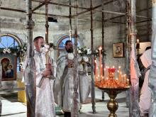7 января, в праздник Рождества Христова, настоятель храма святителя Луки Симферопольского города Чехова иерей Дионисий Пугачёв совершил Божественную литургию в строящемся храме.