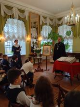 В этот день музей-усадьбу посетили учащиеся 5«А» класса средней школы №8 города Чехова. Для них сотрудники музея провели тематические уроки по арифметике, чистописанию и словесности. С приветственным словом к собравшимся обратились директор музея Г.Н.Тимашкова и заместитель благочинного Чеховского церковного округа, член Общественной палаты м.о. Чехов, настоятель храма святителя Луки Симферопольского города Чехова иерей Дионисий Пугачёв.