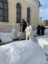 За богослужением молились директор музея усадьбы Лопасня-Зачатьевское Г.Н. Тимошкова, сотрудники музея, а также участники конкурса чтецов произведений А.С. Пушкина.