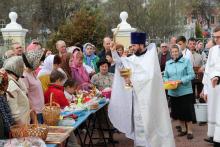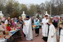 27 апреля, в Великую Субботу, на территории Зачатьевского храма города Чехов совершалось освящение куличей, пасох и праздничных яств к пасхальному столу.
