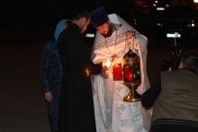 Перед началом праздничного богослужения, при поддержке Администрации городского округа Чехов, в Зачатьевский храм был доставлен благодатный огонь, от которого были вожены свечи и лампады многочисленных прихожан, пришедших в эту святую ночь в Зачатьевский храм.