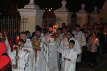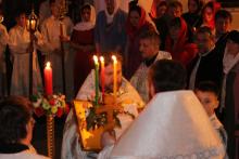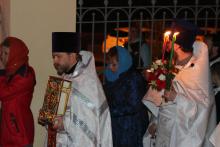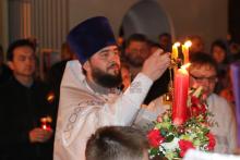 По завершении пасхальной заутрени священник Константин зачитал Огласительное слово на Святую Пасху святителя Иоанна Златоуста, а после чтения Евангелия на Божественной литургии обратился к верующим с Пасхальным посланием Управляющего Московской епархией митрополита Крутицкого и Коломенского Ювеналия.