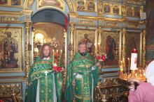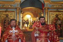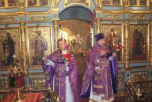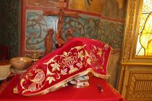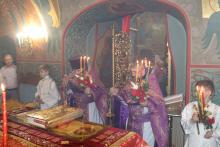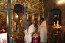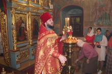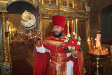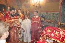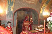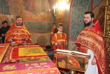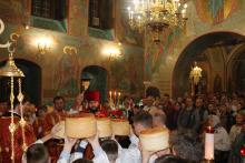 По заамвонной молитве было совершено освящение артоса – пасхального хлеба, который остается всю Светлую седмицу в храме, его обносят вокруг храма на крестных ходах, и только в Светлую Субботу раздается верующим.