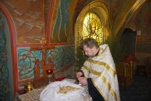 Накануне, 6 января, в Зачатьевском храме города Чехов было совершенно праздничное вечернее богослужение с освящением хлебов (литией).