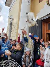 Накануне, 6 апреля, состоялось всенощное бдение с освящением хлебов (литией). В сам день праздника богослужение возглавил благочинный Чеховского церковного округа, настоятель храма священник Константин Александров. После Литургии, по традиции, были выпущены белые голуби - символ благодатного действия Святого Духа, а их белоснежные крылья — одновременно символ чистоты самой Девы Марии. По традиции Церковь посвящает этих птиц Богородице.
