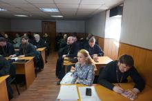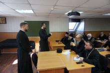 В ходе собрания состоялась встреча духовенства с председателем Епархиального отдела религиозного образования и катехизации иереем Игорем Крикотой и диаконом Димитрием Тарапатовым. Гости рассказали о важности сотрудничества Церкви и государственного образования в вопросе воспитания подрастающего поколения и привели примеры возможного взаимодействия священнослужителей с учащимися общеобразовательных школ.