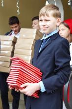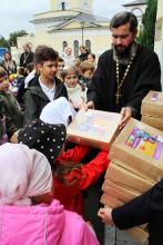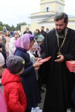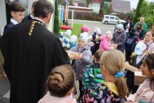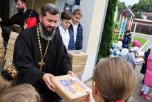 В конце праздничной линейки иерей Константин Александров поздравил всех собравшихся с началом нового учебного года, пожелал помощи Божией и преподнёс новым воспитанникам школы детские молитвословы. А в рамках проведения акции «Собери ребёнка в школу» все учащиеся получили «Набор школьника».