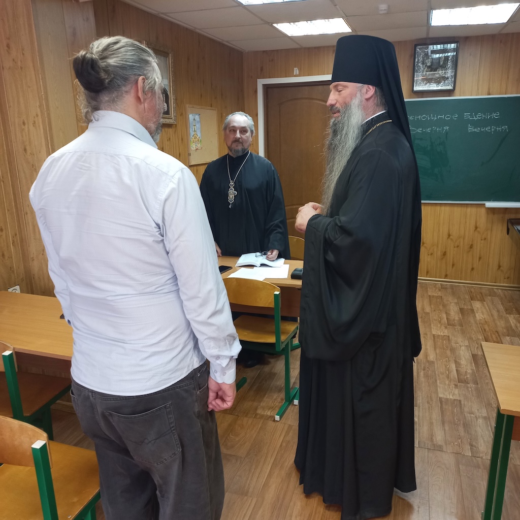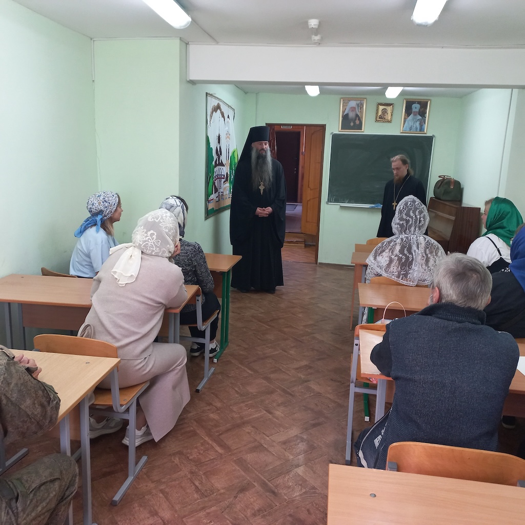 Совершил молебен благочинный Чеховского церковного округа и монастырей Подольской епархии, игумен Вознесенской Давидовой пустыни Сергий (Куксов) в сослужении духовенства Чеховского благочиния. По окончании богослужения отец Сергий передал учащимся благословение архиепископа Подольского и Люберецкого Аксия, обратился к преподавателям и слушателям курсов с напутственным словом и окропил их святой водой. Затем в классах воскресной школы Зачатьевского храма начались занятия первого и второго курсов.