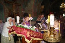 14 августа в Зачатьевском храме города Чехов состоялась праздничная служба, посвященная празднику Происхождения Честных Древ Животворящего Креста Господня. Накануне, за вечерним богослужением, для всеобщего поклонения на середину храма был вынесен праздничный Крест, к которому с благоговением прикладывались верующие. По сложившийся в древности традиции, после вечернего богослужения был отсужен чин малого освящения воды.
