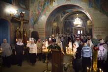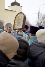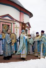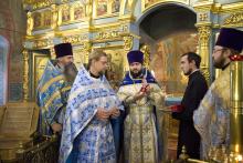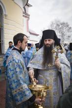 По завершении Литургии верующие прошли вокруг храма крестным ходом. В своей проповеди священник Константин выразил благодарность отцу Игумену и всем священнослужителям, принявшим участие в богослужении, поздравил верующих с праздничным событием, а также вручил общецерковные награды.