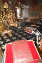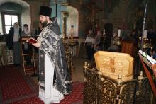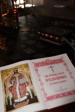После заамвонной молитвы священник Константин прочитал молебный канон великомученику Феодору Тирону и благословил коливо.