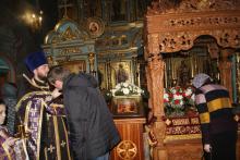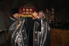 Вечером того же дня в Зачатьевском храме города Чехов была совершена утреня Великой субботы с чином погребения Спасителя и полеелеем под праздник Благовещения Пресвятой Богородицы. Особенно проникновенно звучали похвалы, прочитанные на три статии, и замечательный по своему содержанию канон. Затем, после великого славословия, Святая Плащаница с пением «Святый Боже…» была обнесена вокруг Зачатьевского храма. В конце утрени читались паремия, описывающая видение пророка Иезекииля о грядущем всеобщем воскресении, Апостол, посвященный искуплению Господом рода человеческого, и Евангелие, повествующее о том, как по разрешению Пилата первосвященники и фарисеи приставили стражу к Живоносному Гробу Христову. Прикладываясь к изображению погребенного Спасителя, прихожане сердечно проникались чувствами скорби и надежды, духовно предвосхищая Славное Воскресение Распятого Христа Спасителя.