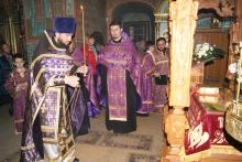 6 апреля благочинный Чеховского церковного округа, настоятель Зачатьевского храма города Чехов священник Константин Александров, в сослужении духовенства храма, совершил вечерню Страстной Пятницы с выносом Плащаницы и чтением канона «Плачь Богородицы». За богослужением молились многочисленные прихожане.