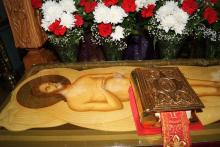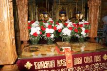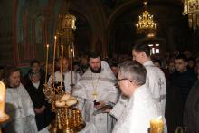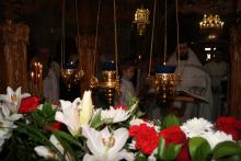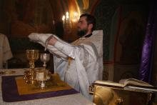 По заамвонной молитве было совершено освящение хлеба и вина, а также вознесена молитва о мире на Святой Земле, которая традиционно совершается во всех храмах Русской Православной Церкви в Великую субботу.
