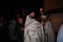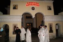 По завершении пасхальной заутрени священник Константин зачитал огласительное слово святителя Иоанна Златоуста, а после чтения Евангелия на Божественной литургии зачитал Пасхальное послание Управляющего Московской епархией митрополита Крутицкого и Коломенского Ювеналия.