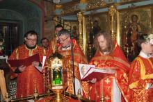 По окончании Божественной литургии отец Константин поздравил прихожан храма с праздником и вручил грамоты Чеховского благочиния сотрудникам и прихожанам Зачатьевского храма.