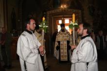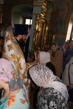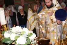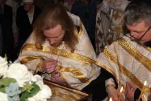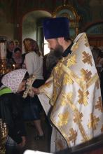 После Литургии и славления отец Константин поздравил во множестве собравшихся в этот день прихожан с праздником.