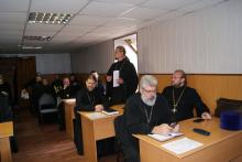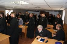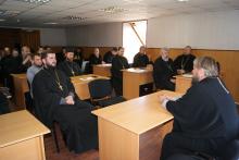 В завершение собрания состоялся пастырский семинар для духовенства Чеховского церковного округа на тему: «О церковной приходской общине», который провел Председатель Епархиального Миссионерского отдела священник Димитрий Березин.